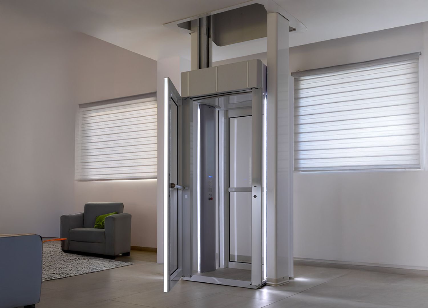 Der Lift kann farblich an das Wohnambiente angepasst werden, um sich harmonisch in moderne, klassische oder industrielle Raumkonzepte einzufügen.